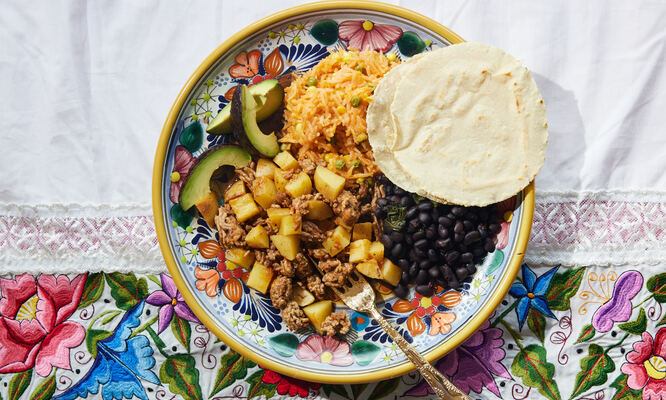 Learn to make picadillo (a traditional ground beef and potato dish), arroz a la mexicana (long grain rice toasted and simmered in tomato-onion paste), and frijoles negros (black beans simmered with aromatics) served with sliced avocado, queso fresco, and queso blanco!